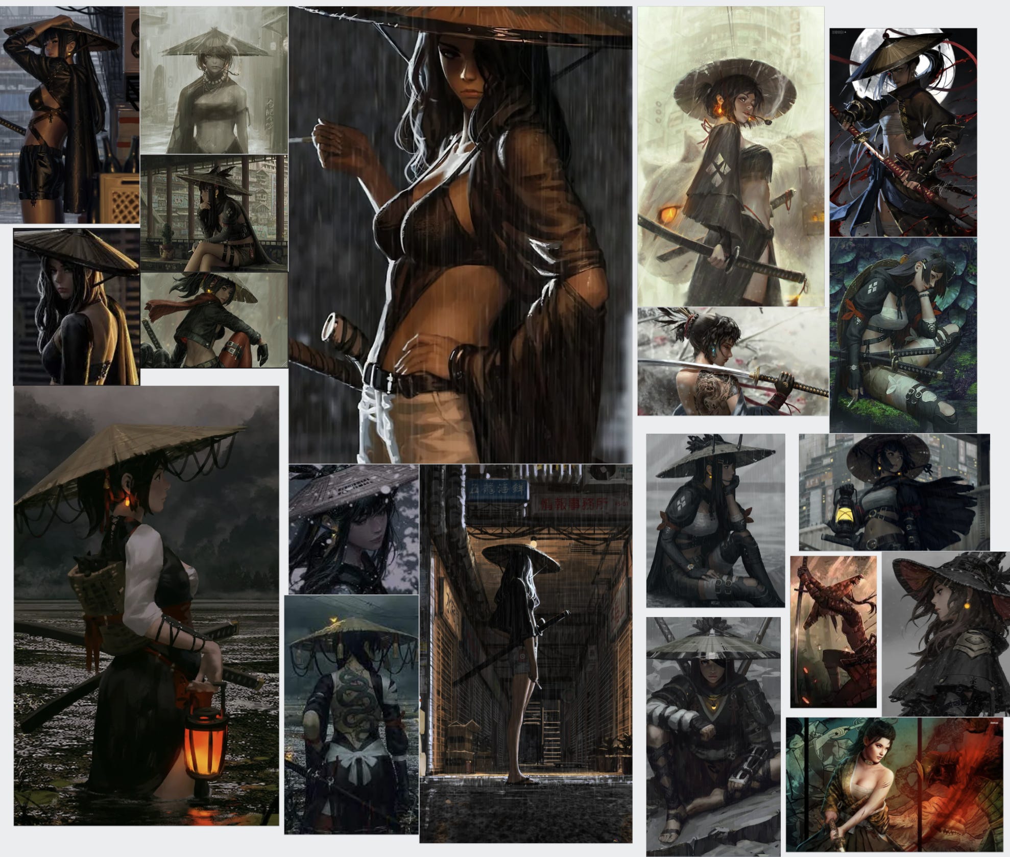 Historically, Takana is heavily influenced by Tomoe Gozen. The last name is an homage, as she’s not a direct descendent. Takana’s mentor, Tomoe, is also an homage (more on her in future posts). If you are unfamiliar with the legend of Tomoe Gozen, I highly recommend going down that rabbit hole. She was an amazing warrior in a male-dominant history of warring Japan.