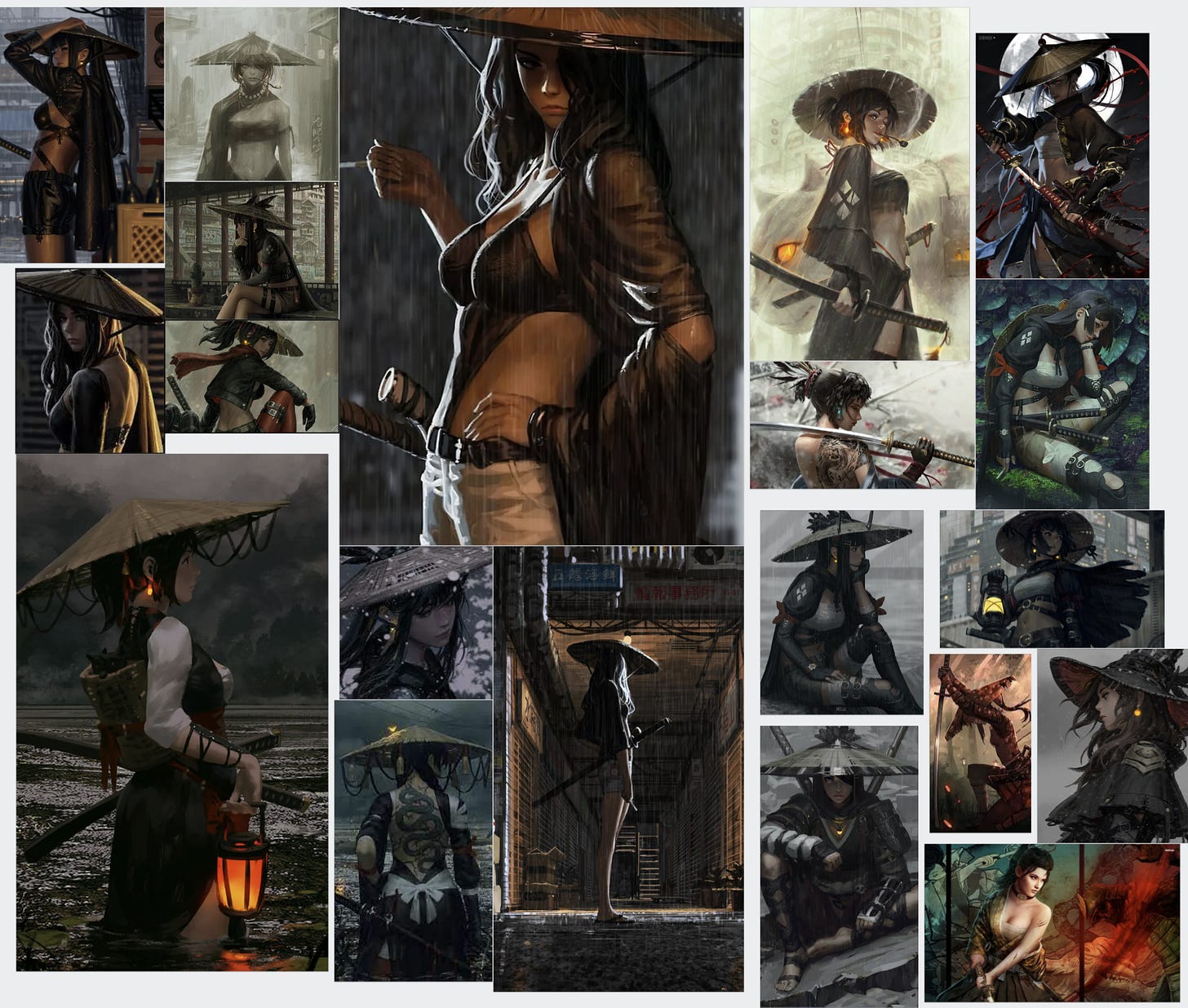 Her raven black hair and the way she looked the same in almost every scene helped solidify Takana’s main look and attitude in the sense of movement beyond what I’d gleaned from her mood board.